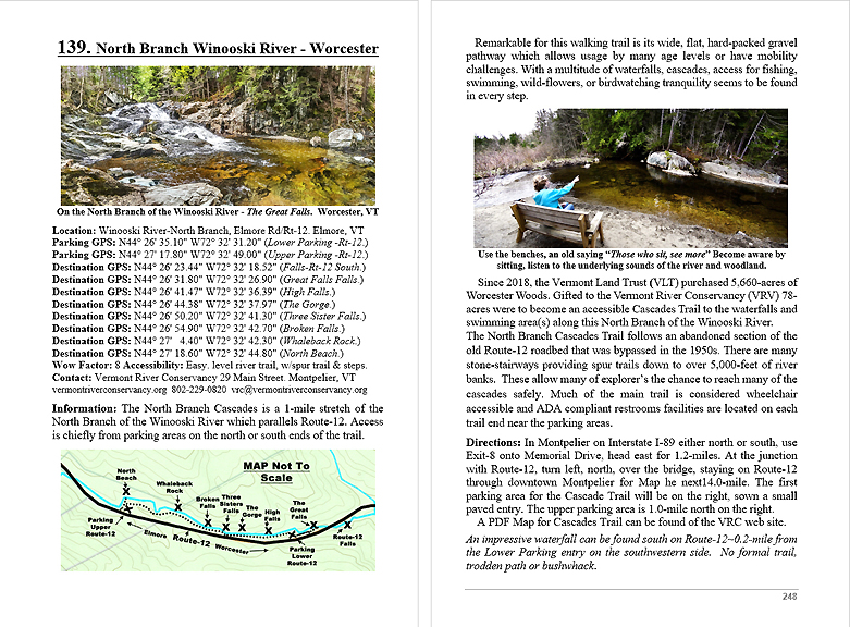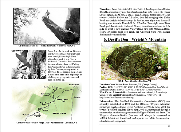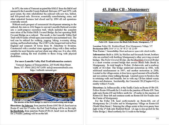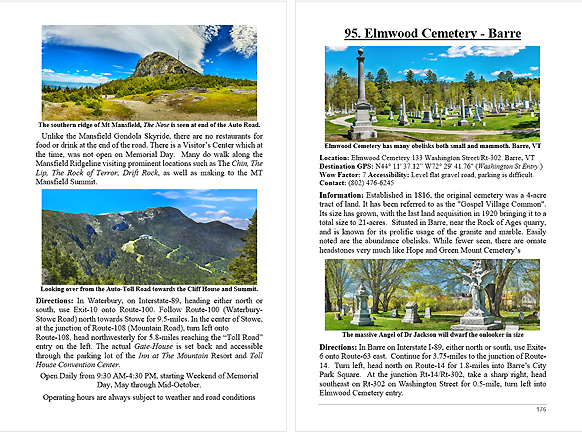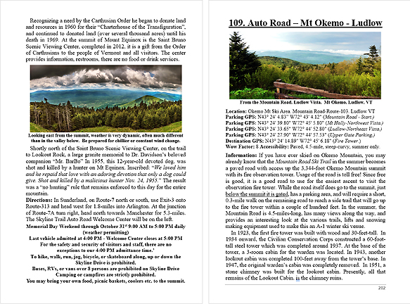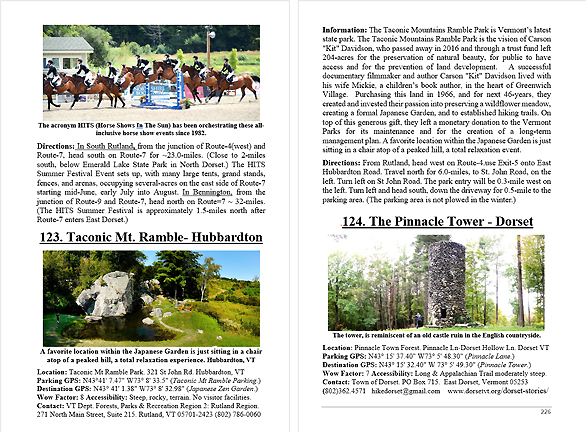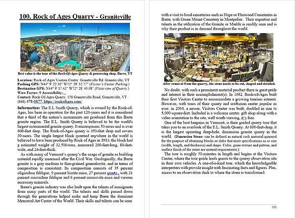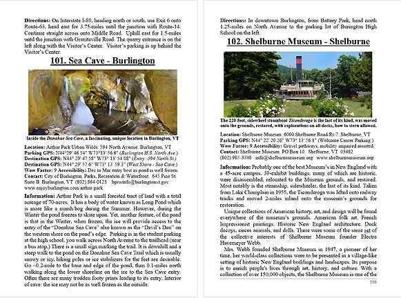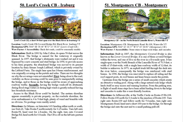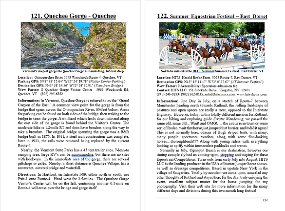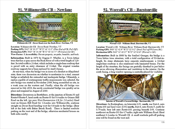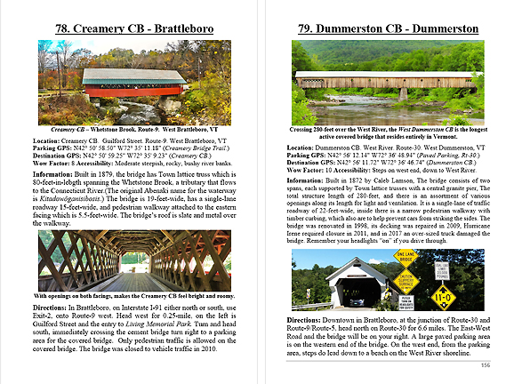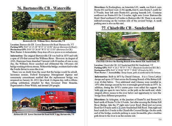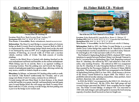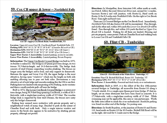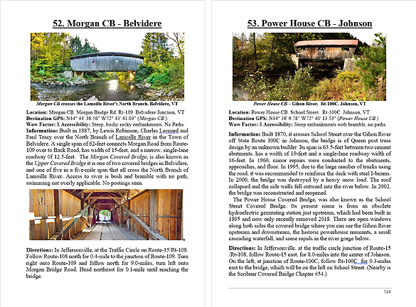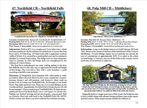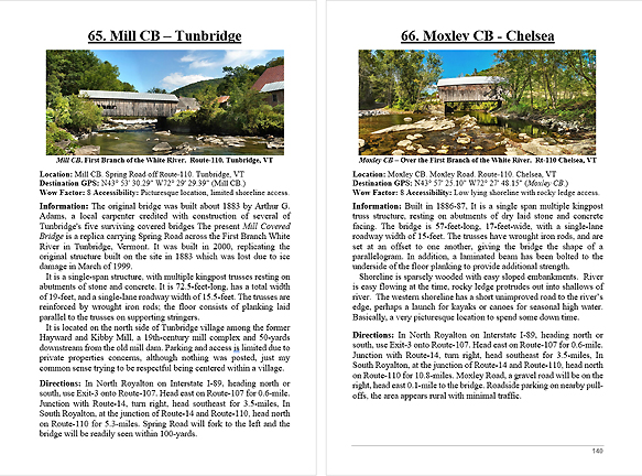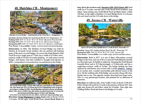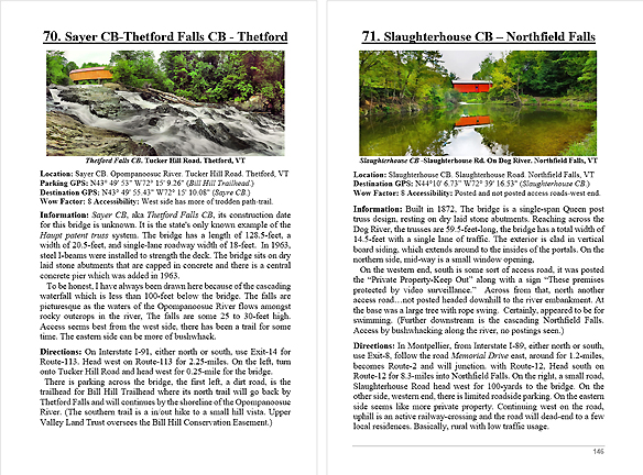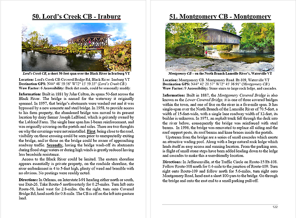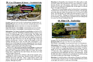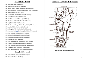 Look Inside The Book ( Random Samples of Various Pages) Covered Bridges -Waterfalls - Boulders - Points of Interest Total of 304 pages, 170 Chapters, arranged alphabetically within each section.  |