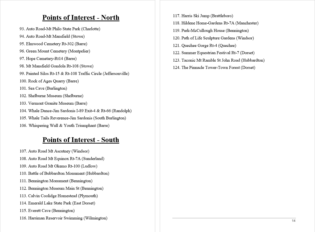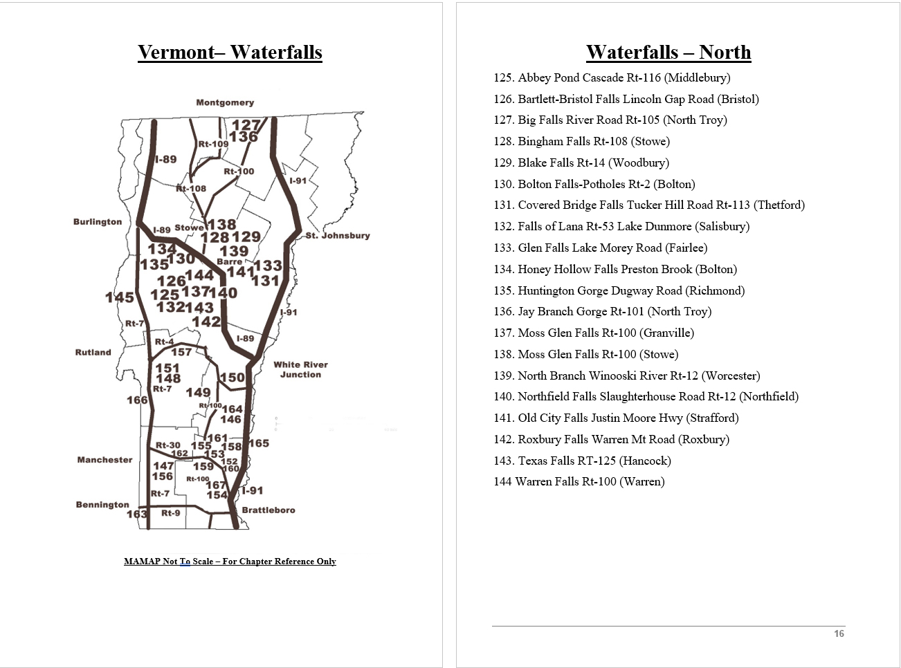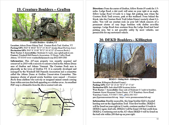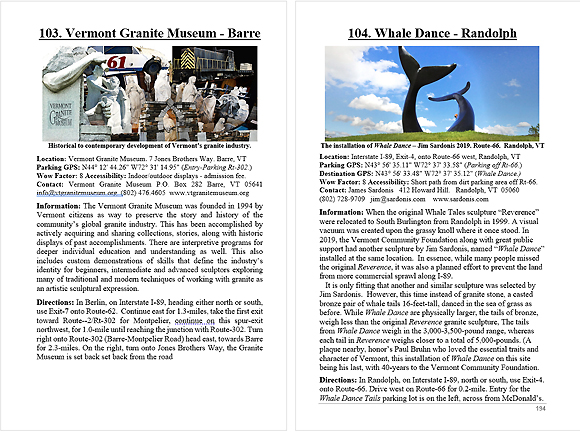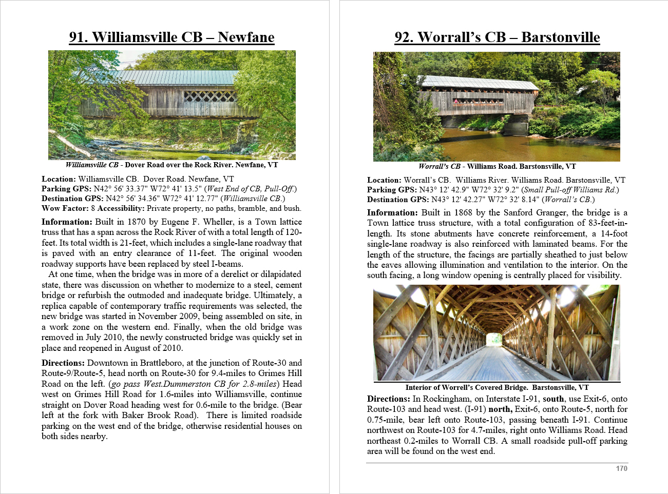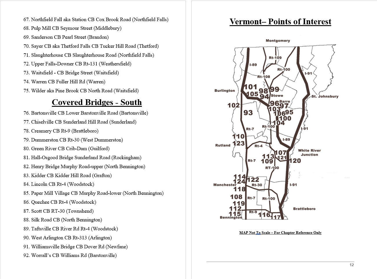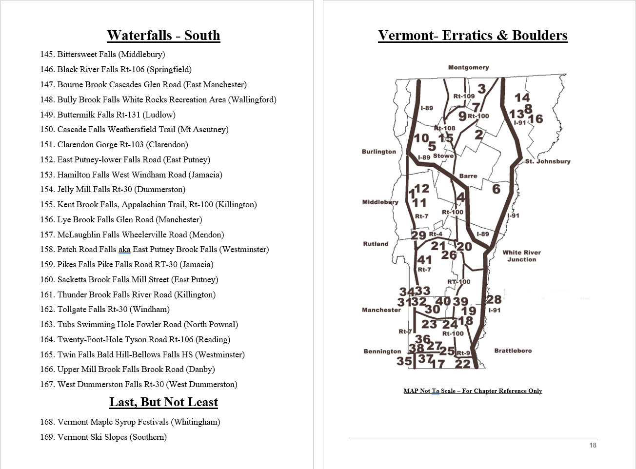 Look Inside The Book ( Random Samples of Various Pages) Covered Bridges -Waterfalls - Boulders - Points of Interest Total of 304 pages, 170 Chapters, arranged alphabetically within each section.  |