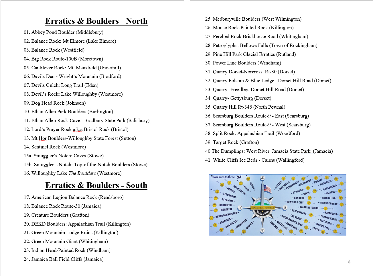 "Vermont Destinations" An Explorer's Guide to Waterfalls, Boulders, Vistas, Covered Bridges, and Points of Interest of the Green Mountains in Vermont.by Jan & Christy Butler  |